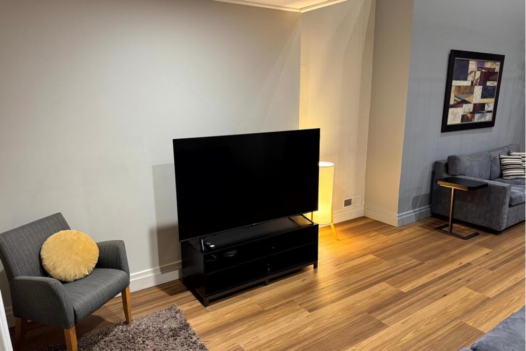 Large Flat Screen Smart TV in living room.