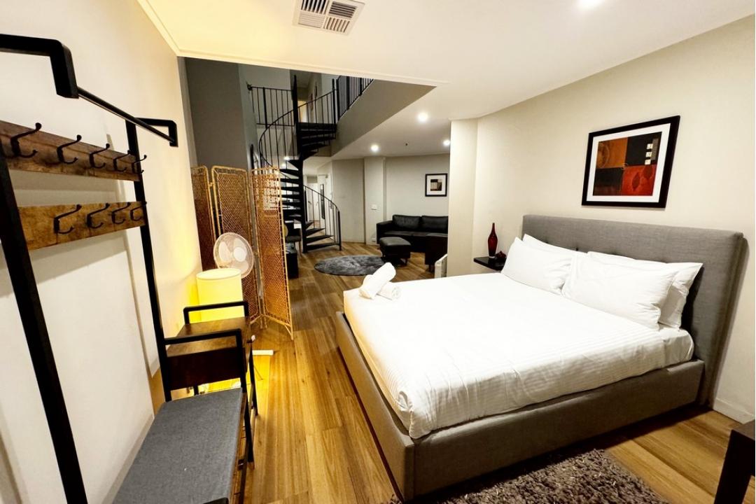 Experience the vibrant city lifestyle right at your very doorstep in this extra large self-contained two storey, Two-Bedroom Apartment, being only a 10-minute walk away from Melbourne Emporium and 50m from Melbourne's underground and tram network!