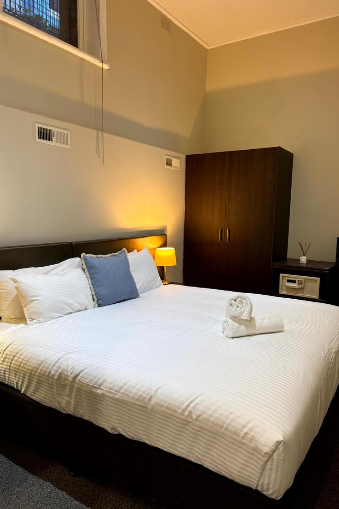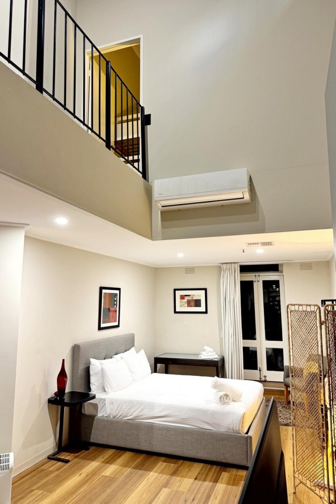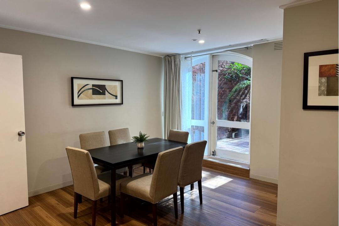 This apartment boasts a sunny private courtyard with access to the complex's communal swimming pool as well as space that you don't regularly find in an inner city apartment. The ceiling height gives an unbeatable charm. Located in the heart of Melbourne's theatre district, lively CBD, and Chinatown, this will soon be your go to home away from home. Fully self-contained and offers every convenience you'll need.